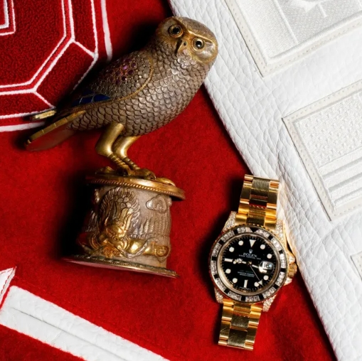Beyond the China clone Rolex watches themselves— which is offered unpolished and in full set with original box and papers — the lot includes a suite of OVO memorabilia: the Owl statue featured on the Take Care album cover, clothing and backstage passes.